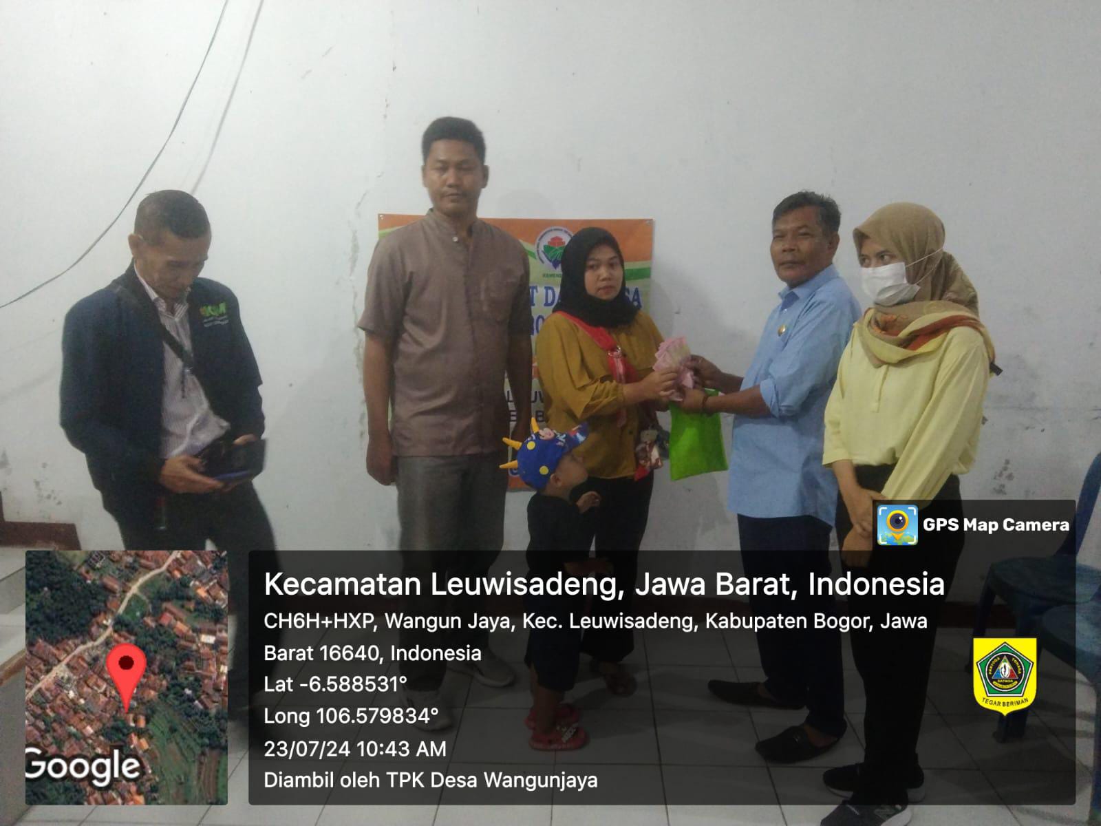 Hadir dalam kegiatan tersebut, kepala Desa Wangunjaya, sekertaris desa, para staf, pendamping Desa, muspika Leuwisadeng, Babinsa, bhabinkamtibmas, Kadus, RT, RW, Linmas serta para penerima manfaat.