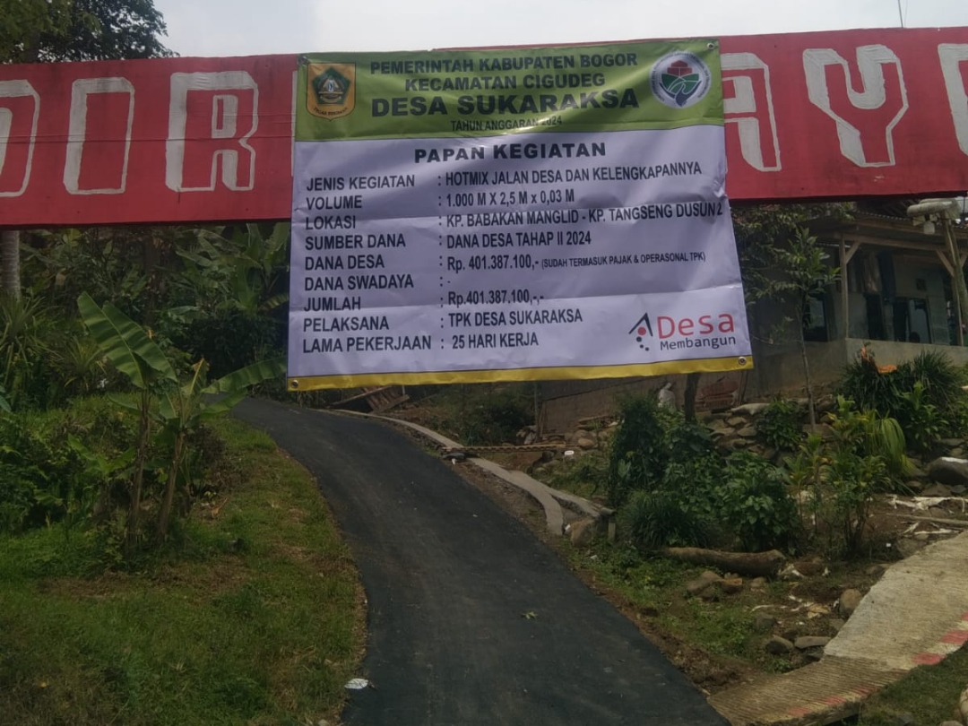 CIGUDEG, BRN – Program Dana Desa (DD) tahap II tahun anggaran 2024 direalisasikan di Kampung Babakan Manglid RT 01 RW 03, Desa Sukaraksa, Kecamatan Cigudeg. Salah satu proyek yang tengah dikerjakan adalah perbaikan jalan yang sebelumnya mengalami kerusakan parah.