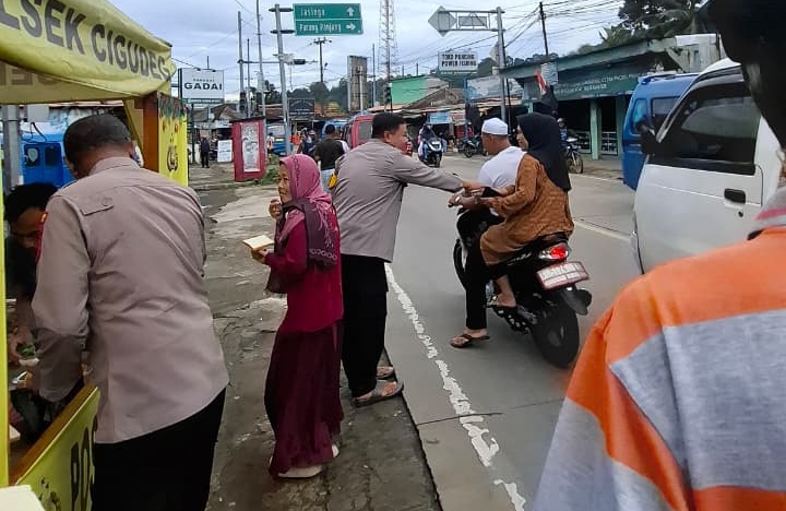 BOGOR, BRN – Kapolsek Cigudeg beserta jajaran nya terus menunjukkan kepeduliannya kepada masyarakat sekitar dan pengendara melalui program “Jumat Berkah.” Kapolsek Cigudeg AKP Budi Sehabudin membagikan 300 paket makanan Bubur kacang hijau dan roti pada jumat (26/12/25).