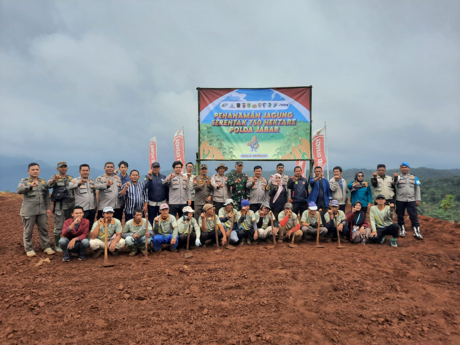 BOGOR, BRN – Jajaran Kepolisian Sektor (Polsek) Cigudeg bersama unsur Muspika Kecamatan Sukajaya mengawal langsung pelaksanaan program Presiden Prabowo Subianto terkait ketahanan pangan nasional melalui penanaman jagung serentak seluas 750 hektare yang digagas Polda Jawa Barat.